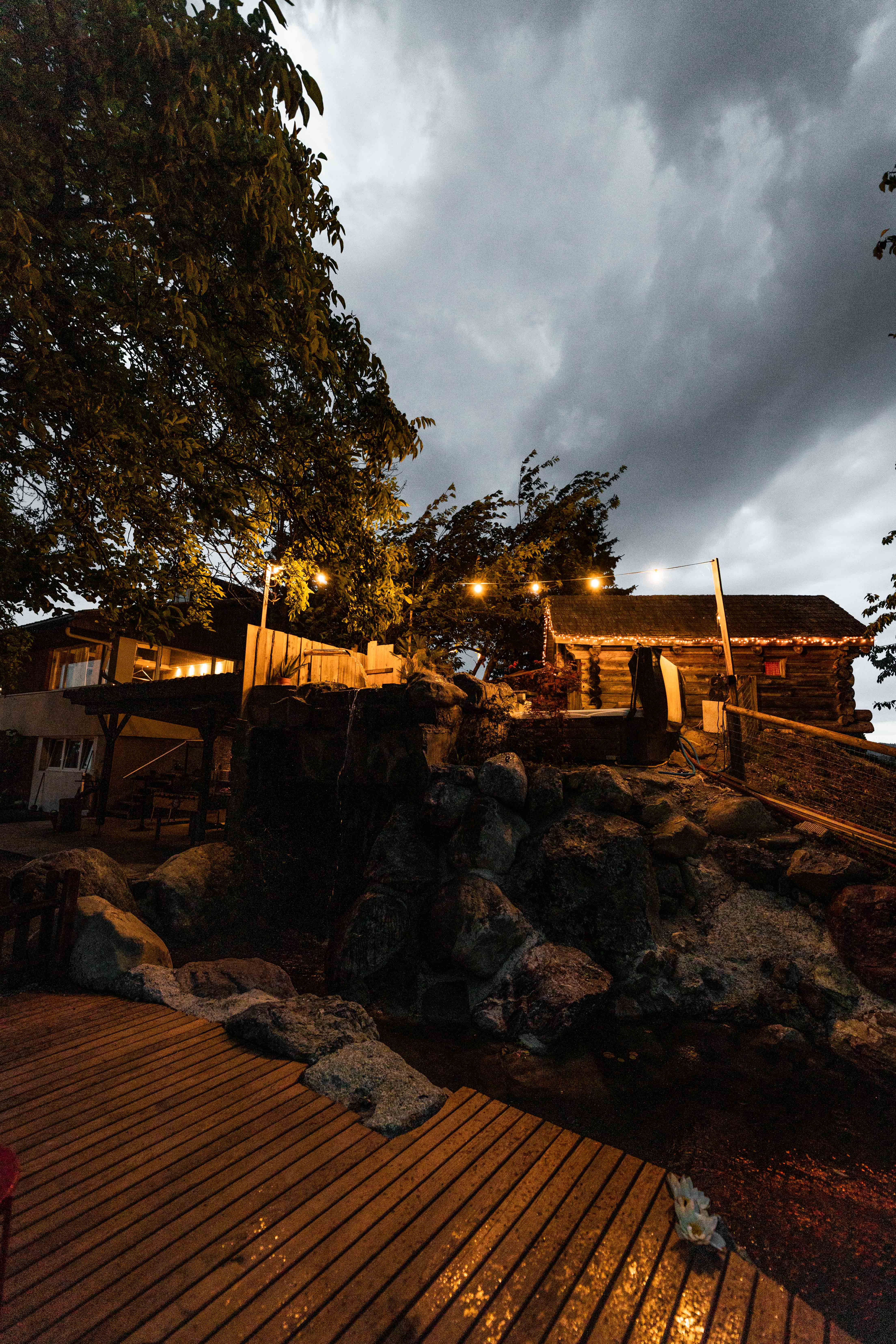 Der ganze Hof wird zur Partylocation. Und das will was heissen. Schon der Aussenbereich ist gross mit dem schattenspendenden Nussbaum, dem erfrischenden Wasserfall und dem Biotop. Die Lounge mit dem Feuerring ist episch. Kinder vergnügen sich mit den vielen Kleintieren, im grosszügigen Kinderspielbereich oder auf dem Vorplatz beim Pingpong oder Tischfussball.
